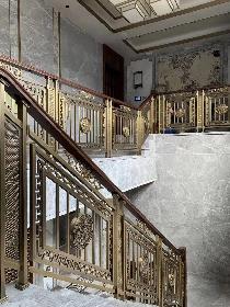別墅銅藝樓梯-銅樓梯欄桿色彩變化:銅欄桿會隨著時(shí)間的推移逐漸氧化,形成獨(dú)特的綠色或青銅色,增添了古樸 ..